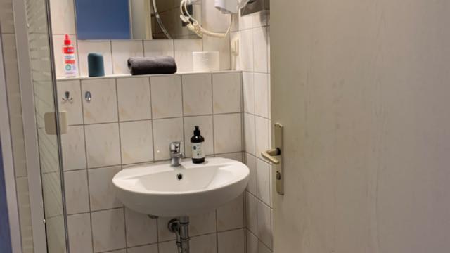 ein Duschbad (mit Haartrockner, Kosmetiktüchern, Vergrößerungsspiegel)